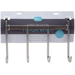 5-Hook Grey Bombay Diamond With Bamboo Wood Basket Over The Door Hanger