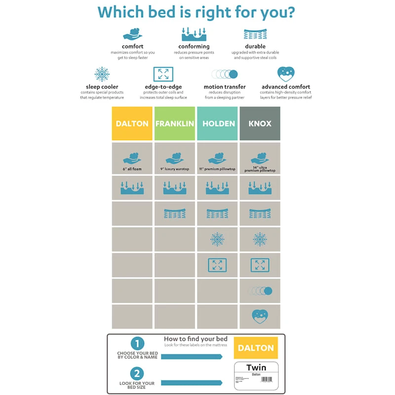 Get the perfect night�s sleep you�ve been looking for. Our Franklin mattress features a euro top design that adds that extra layer of cushioning foam for additional comfort, all along the surface of the bed. We use the Verti-Coil innerspring to provide your back with the kind of support it needs to get you that great night of sleep, providing amazing comfort and support for all of your pressure points. Made in the USA.