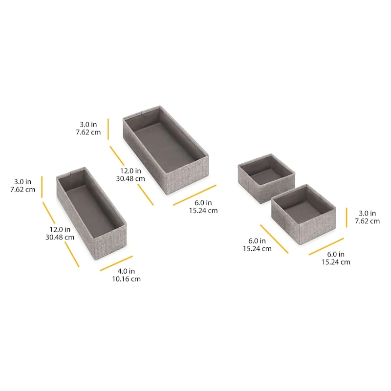 Set Of 4 Fabric Drawer Organizers, Black Herringbone